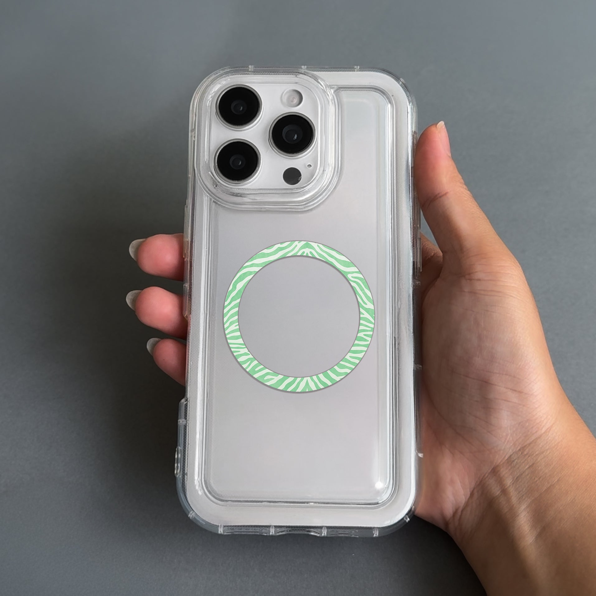 Peel the film protecting the adhesive, and stick to the OUTSIDE of the phone case, in the exact location of the magnetic ring inside your phone.